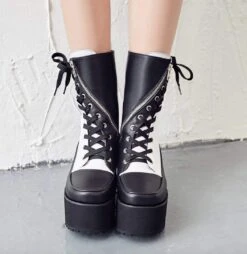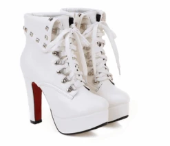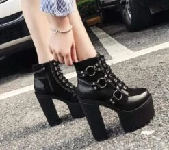 The round toe style and the Lace up closure makes it beautiful. Have you seen the design on these? And the belt decoration are an absolute need. These may look dangerous but these have the inner lining of cotton so that you have no troubles standing for hours in concerts.Â