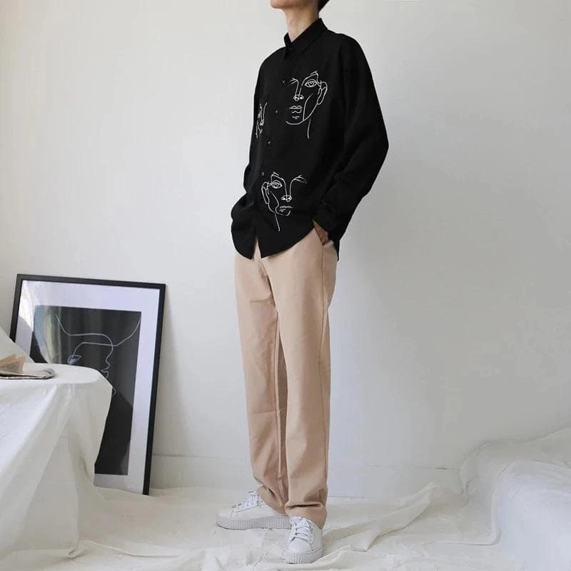 They won’t be able to look you in eye in the Aesthetic Face Long Sleeve Shirt; made using a luxe polyester fabric. Features a turn-down collar, button-up front, long sleeves, and statement aesthetic face prints. Wear a size up for a more relaxed look; ideal unisex garment to mix and match as yer dark heart desires!