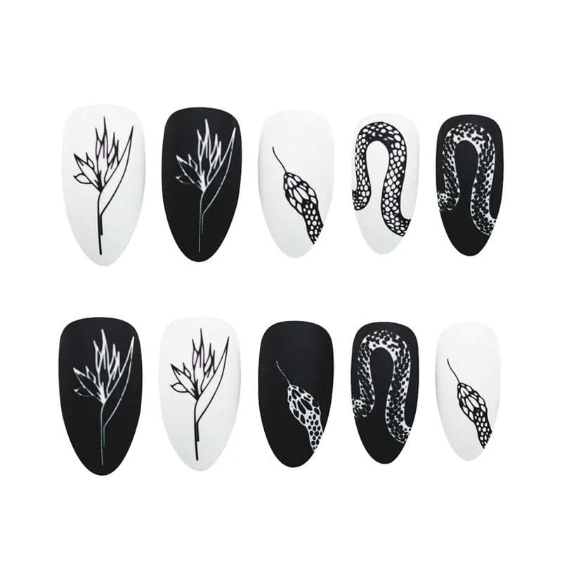 These beauties are the latest in our witch nail art collection. Stun the haters in our elegant snake aesthetic nails. These nails feature