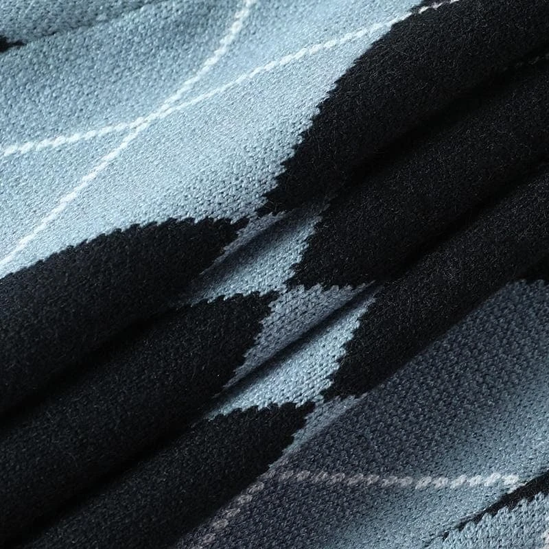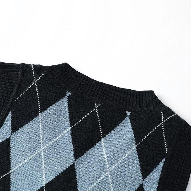 Hauntingly cute, this knit crop features a plaid and skull pattern. Super wearable in delightful monochrome, this crop looks super cute when paired with skater skirts, shorts, and hi-top sneakers.  BYO cheerleader pom-poms.