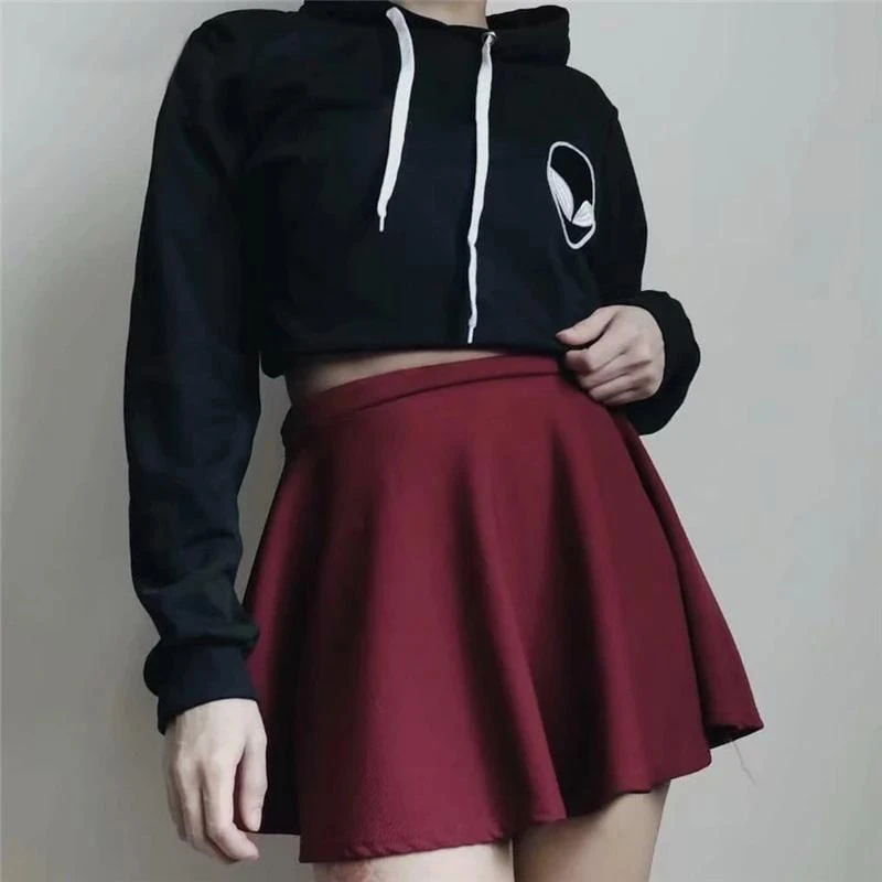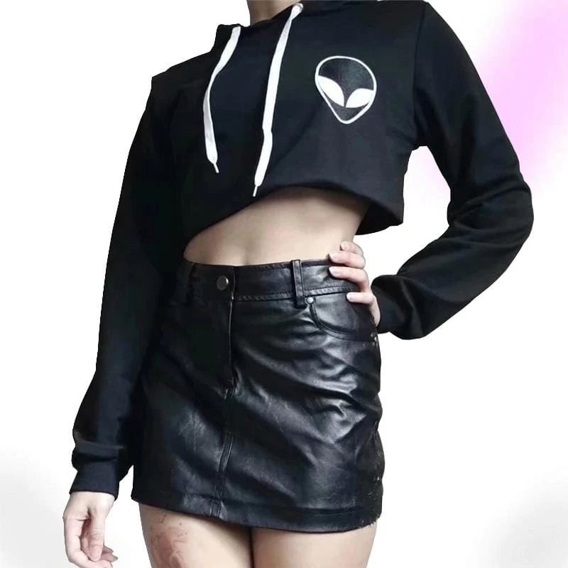 Alienwear Punk Hoodies cuz your charm is out of this world bb! Invade their minds with your looks in these crop top sweatshirt hoodies featuring aesthetic black clothing made of high-quality cotton and nylon printed with alien logo design.