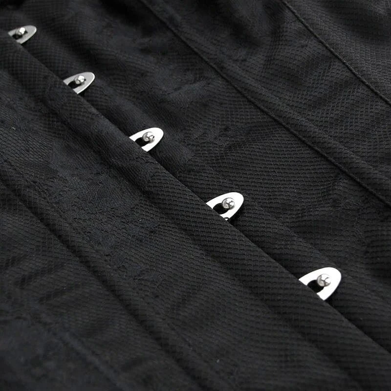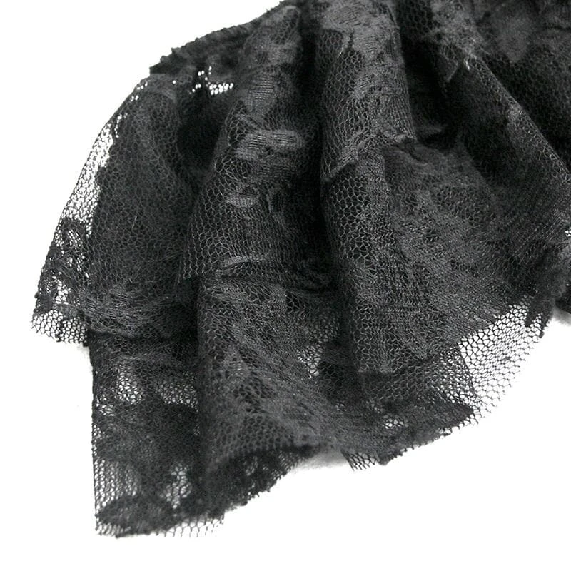 Your beauty lies in the shadows—from within you harness the chaos of the night. Channel your inner darkness in this ‘Amabel’ Off Shoulder Lace Corset. Constructed of polyester spandex material, this lace corset shows some curve to intrigue and leave ’em wanting more. Complete with floral lace ruffles and lace-up at the back, you break hearts and turn heads – so nice to look at, but so deadly to touch!Â