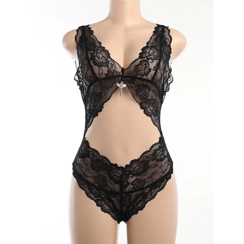 You got ‘em fallin’ in love with you bb! Look sexier than ever in this Angel Kiss Floral Lace Bodysuit. Features a luxurious floral lace design and a plunging neckline with a silver angel detail at the front, there’s no end to the seducing looks you can pull with this baby!