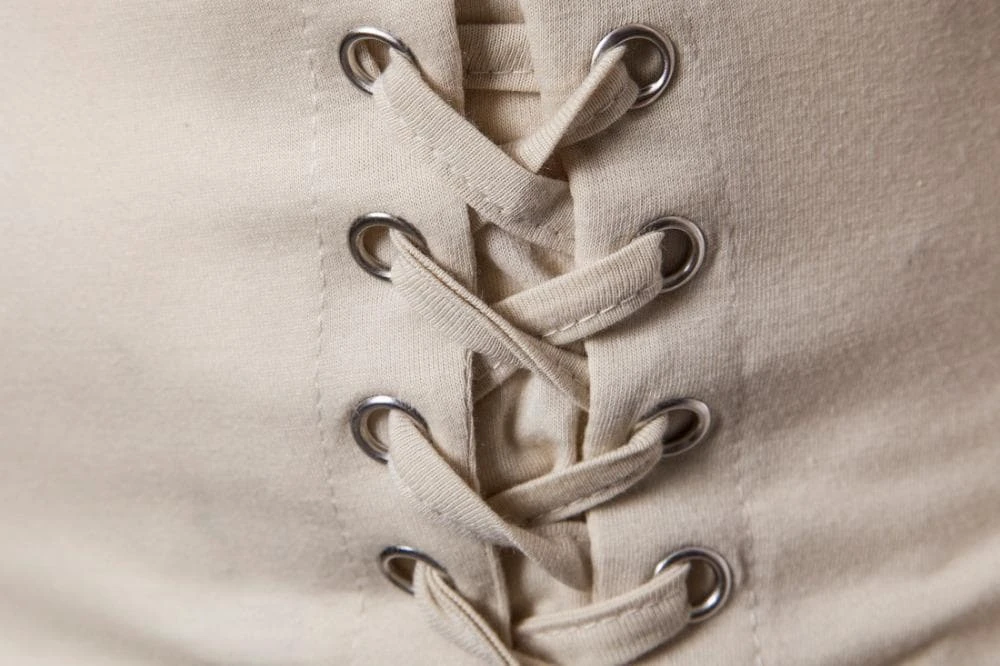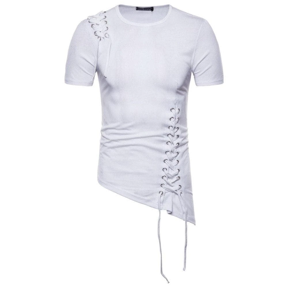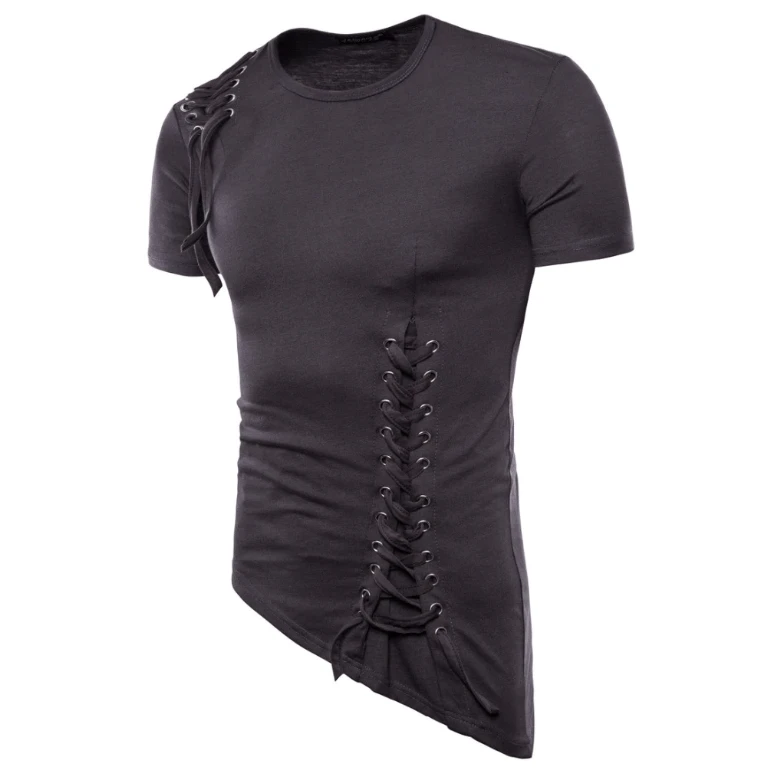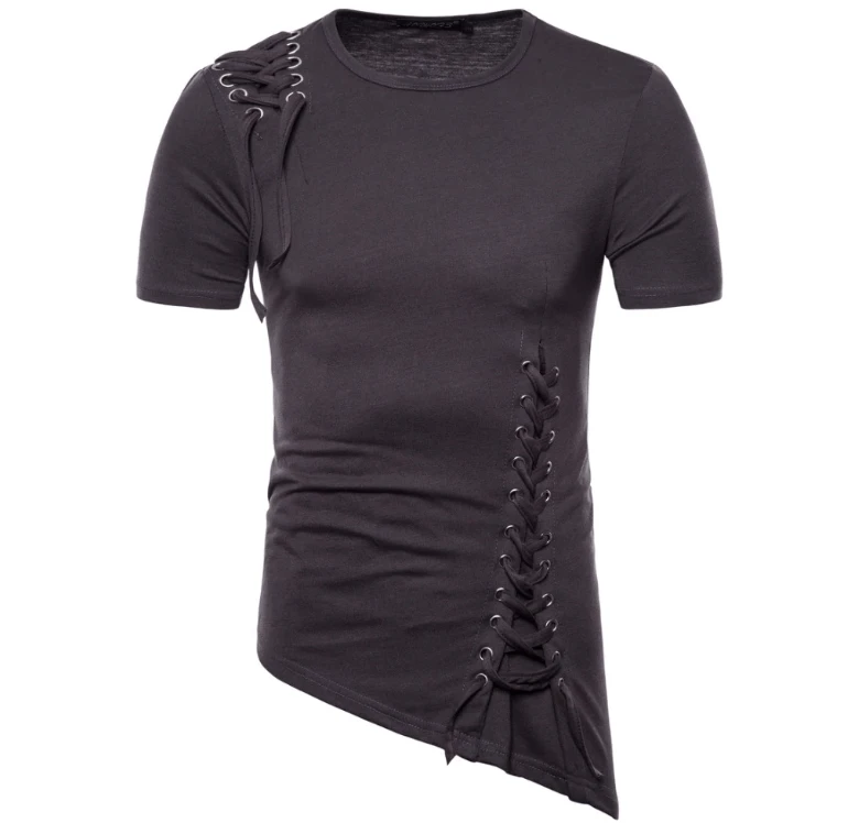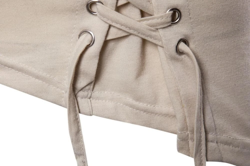 This short top is a mix of Spandex and Cotton, with an O neck and lace up style. The Asymmetrical style is enhanced by the cut on the side.Â