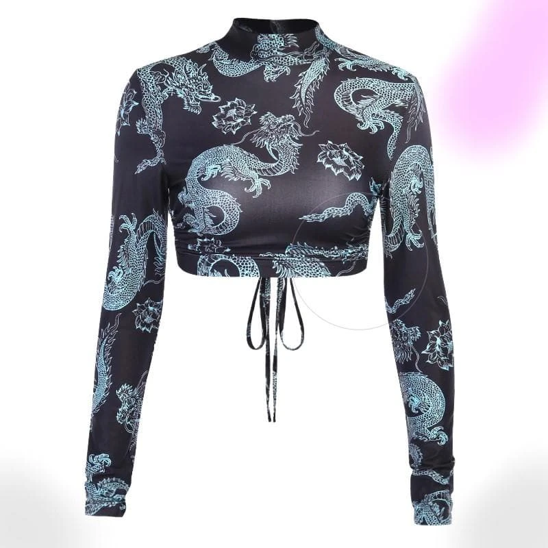 They can’t stop you now that you have ancient powers protecting you. This Backless Dragon Crop Top is all about glory.Â