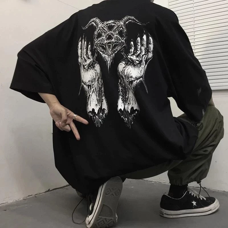 Life’s too short to take it seriously… Look every part badass in our ‘Baphomet Harajuku Unisex Shirt’. Conjured using a super-soft cotton blend. Complete with a printed graphic, half-sleeves, and an o-neckline for a relaxed but stylish look. This gothic top is a dream to style and looks good with everything – the options are endless!