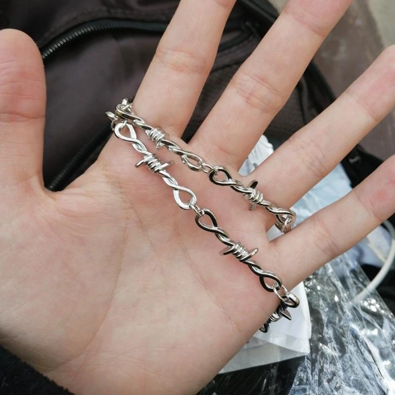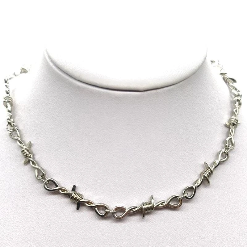 Rebel all you want with this choker that has a sick barbed wire detail all over and a clasp closure. A little danger on the neck for the escapee with a flair for the dramatic. This choker necklace is a thinner more delicate alternative to the barbed wire choker necklace for all you soft punks out there.