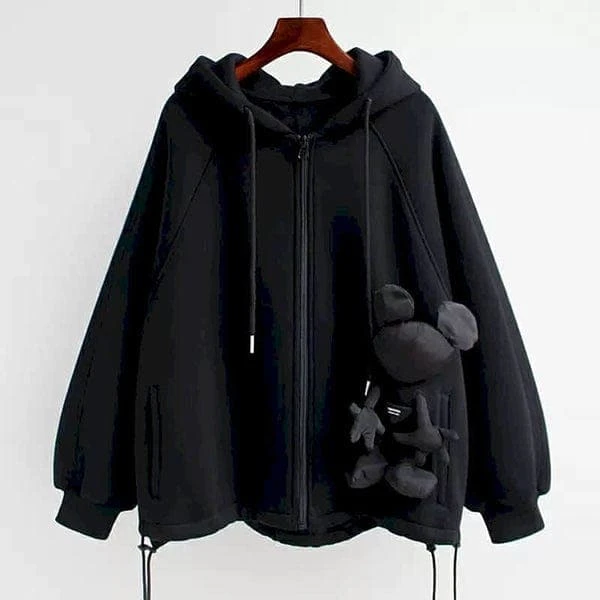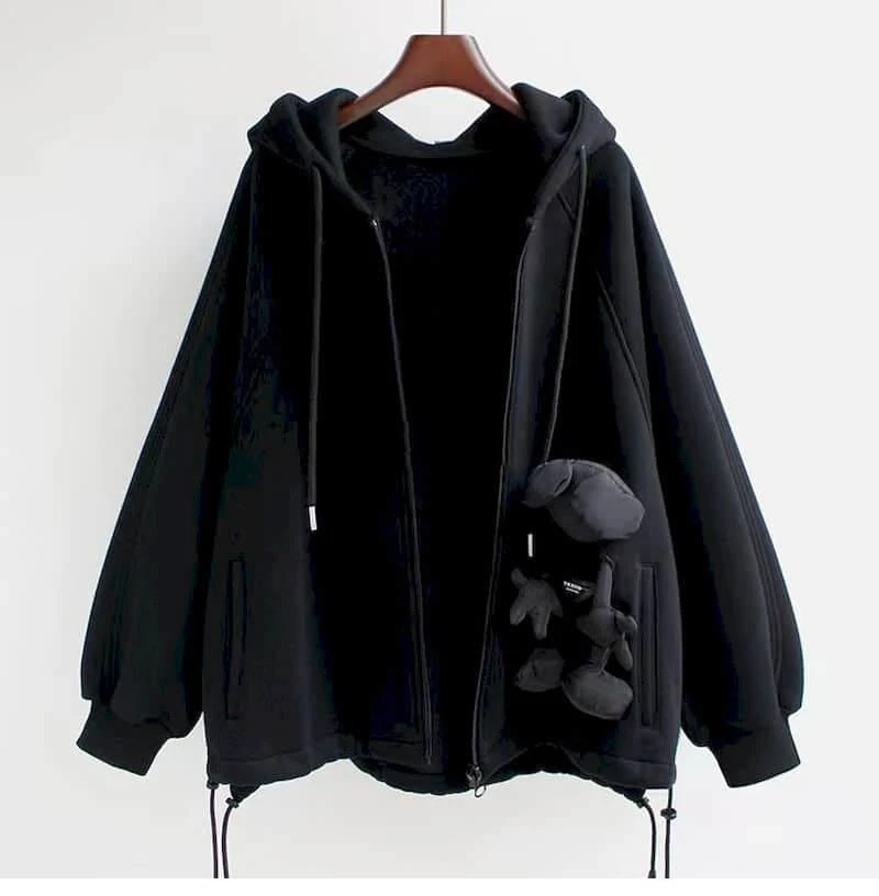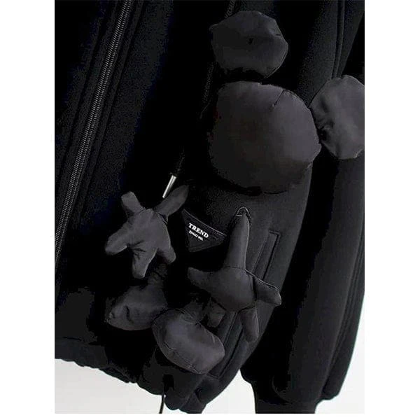 A toast to new and long-lost memories. This hoodie is made of slouchy, thick cotton for a relaxed fit adorned with a black 3d doll. Luxurious yet comfortable, this loose hoodie will keep you warm through the most biting chills.