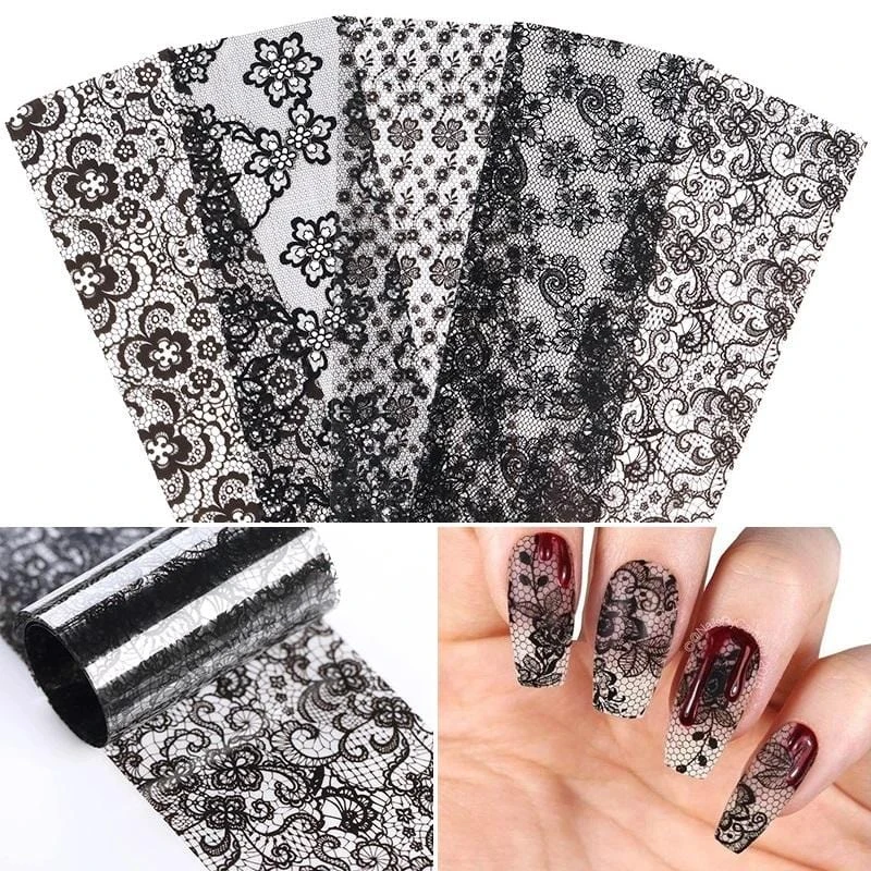 Nothing says sexy and classy than lace outfits. Take things a bit further with a gorgeous lace nail art to go. The lace trend is being so hot this season, and then why not try them on our nails? It will look wonderful when adding a Black Lace Fashion Nail Stickers lace pattern to your nail designs.