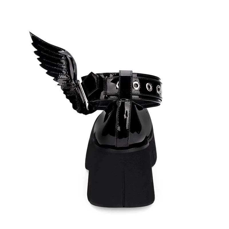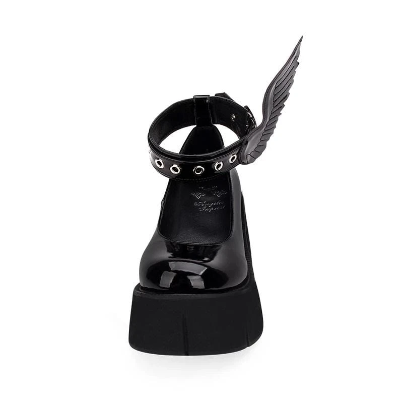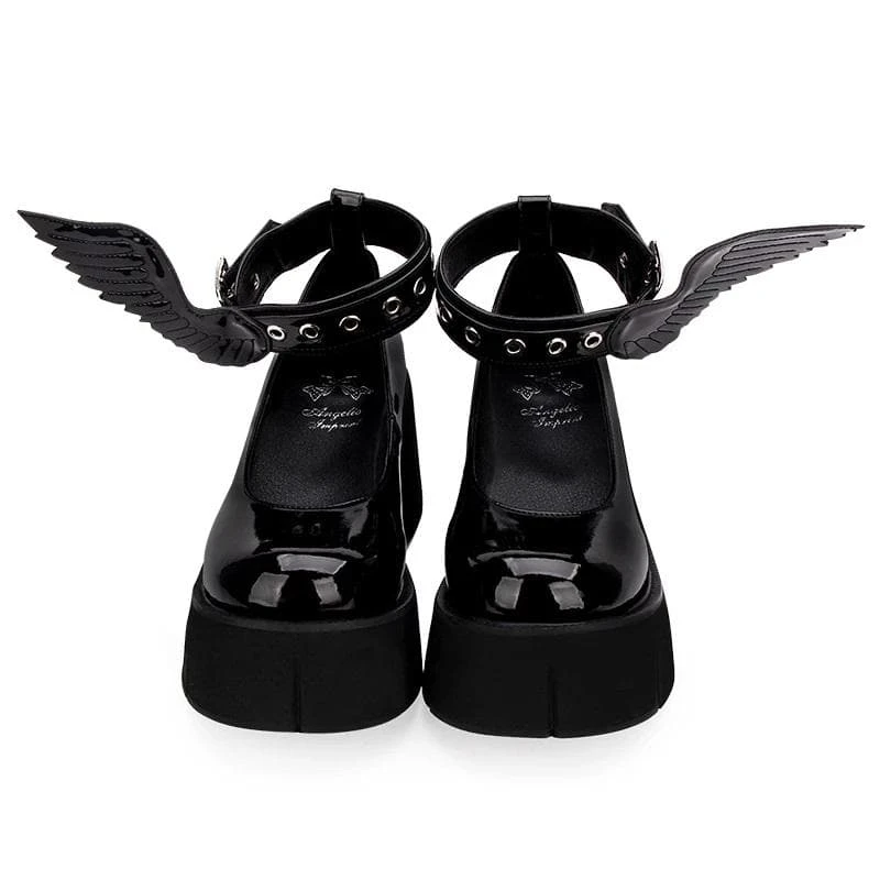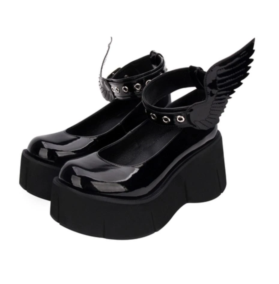 Get ur head in the clouds but ur feet on the ground in these Lolita Black Wing Shoes. These elegant shoes are very cute for role-playing and daily life. These shoe features: