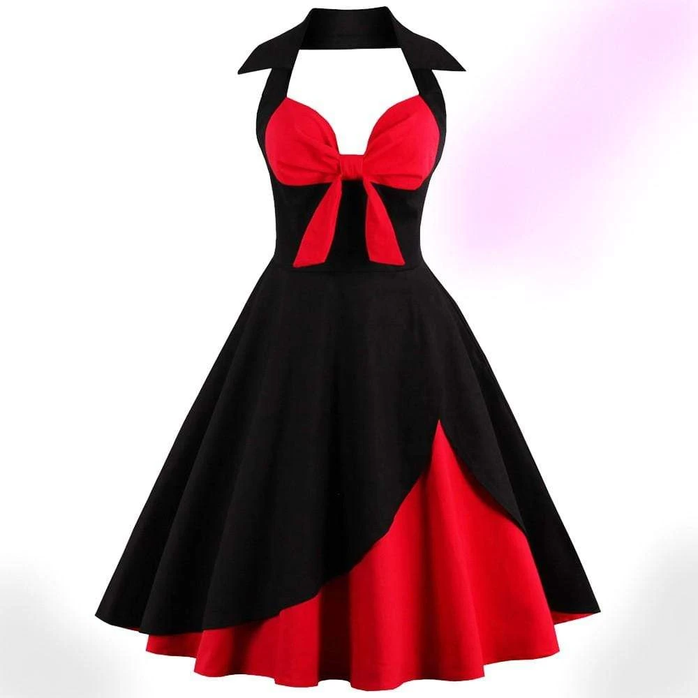 The bloody Rockabilly Dress is about to rock your vampire style aesthetic up a notch! With a V neckline that is to be knotted behind and combination of black and white, the dress is absolute ideal candidate for a good experience at being a blood sucking vampire.