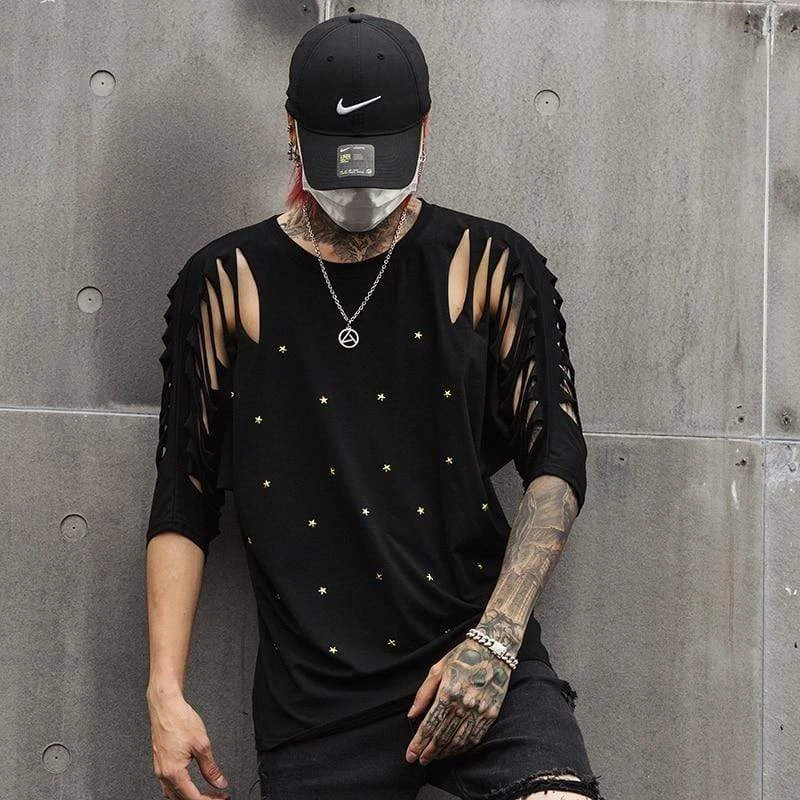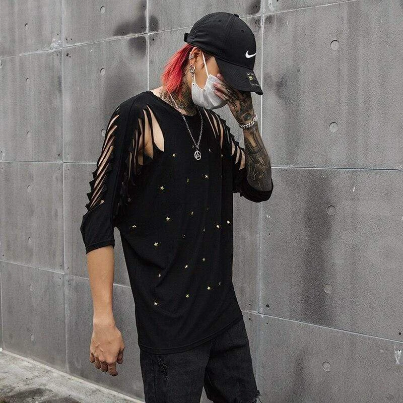 Breaking Bad Gothic Shirt cuz you’re not in danger, you are the danger bruh! This stylish summer shirt features its perfectly aligned hollow cut out design with batwing shirt structure. It has a star print design in its aesthetic black fabric made of high-quality cotton and spandex.