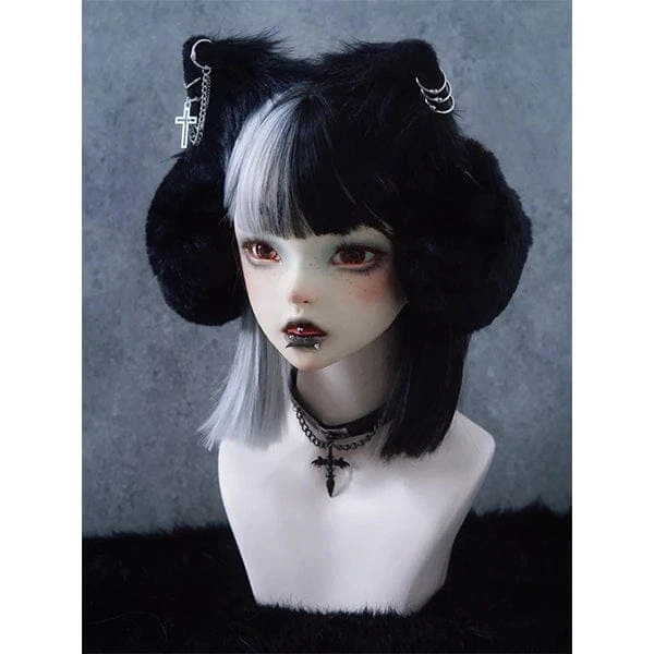 Look no further than these fluffy-textured and adorable muffs. Keep you warm through the cold days of winter with a cute style that matches perfectly with any coat or top. Silver chains, o-rings, and accent crosses bewitch the super-soft design. Perfect for celebrating winter nights under the midnight moon.