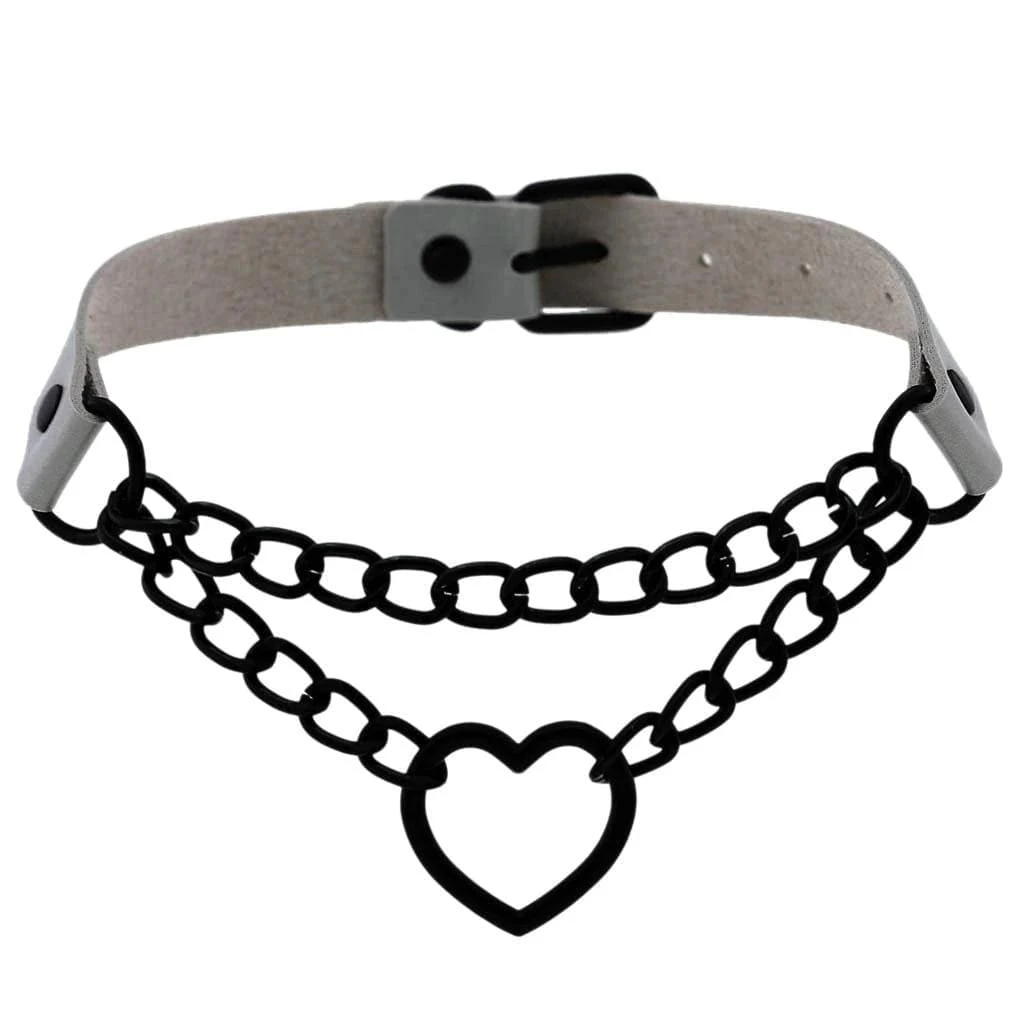 Add a touch of love-magic to yer day-to-day with the Chained Heart Gothic Leather Choker. Featuring faux leather with a statement chained heart to the front and adjustable back for a perfect fit.