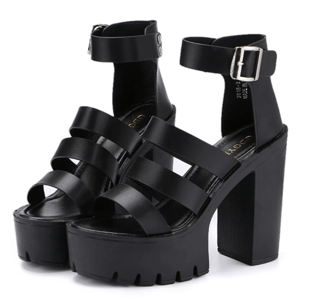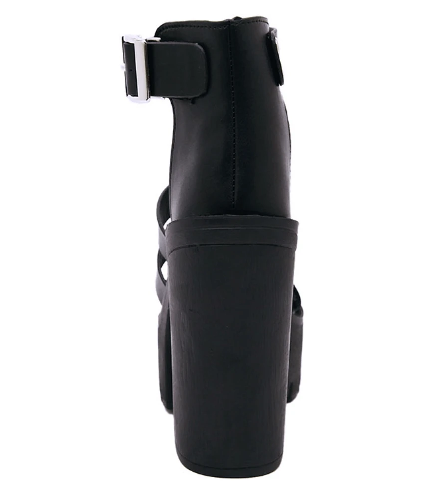 These heels with approximately 13 cms and 5-7 cms of platforms are what we call show stoppers. We have cover heels, buckle straps and the finest of the PU material. Available in two colors, make your pick.Â