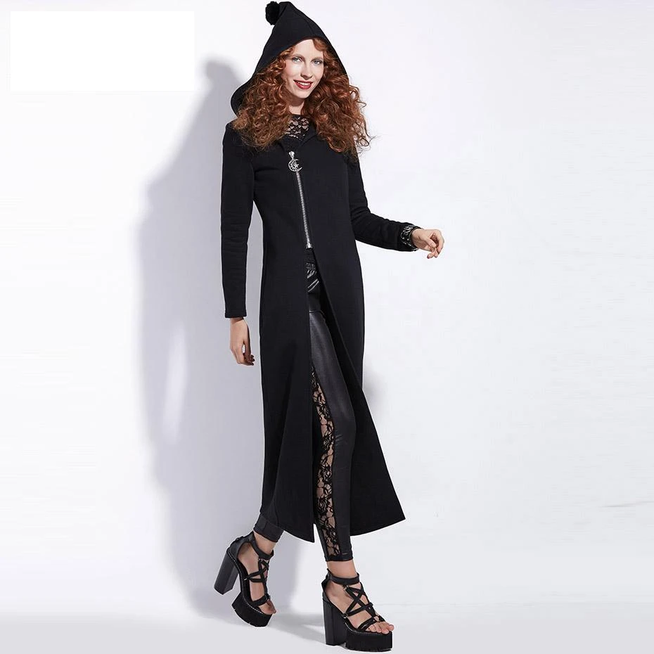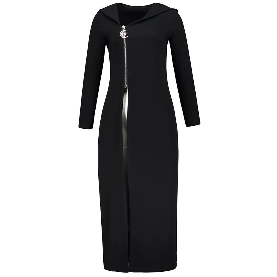Classy Gregorian Fashion Coat cuz you’re no stranger to the darkness bb. Inhale fashion exhale style in this black hooded coat featuring an irregular zipper closure with crescent moon keychain and irregular slit extended all the way to the end of the coat.