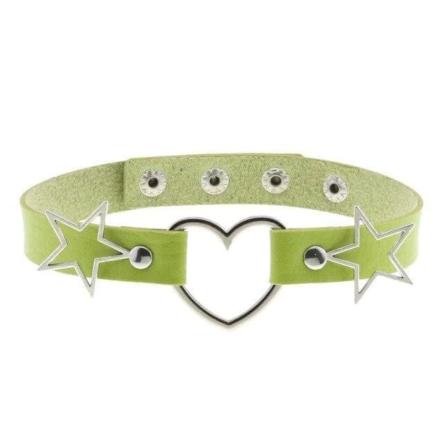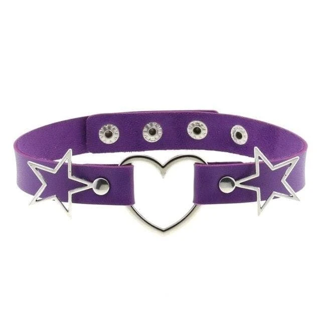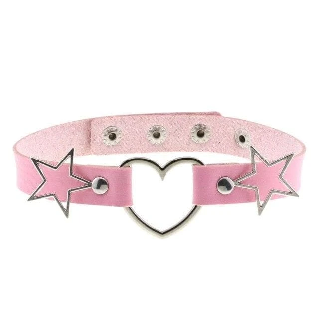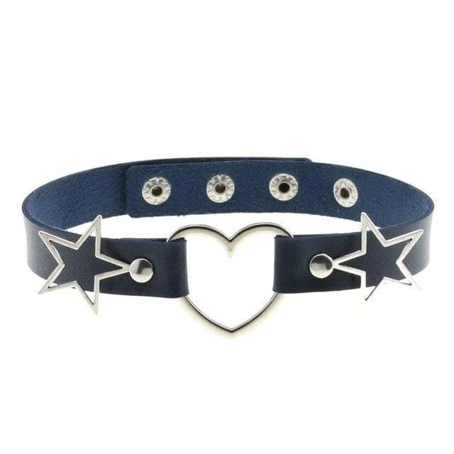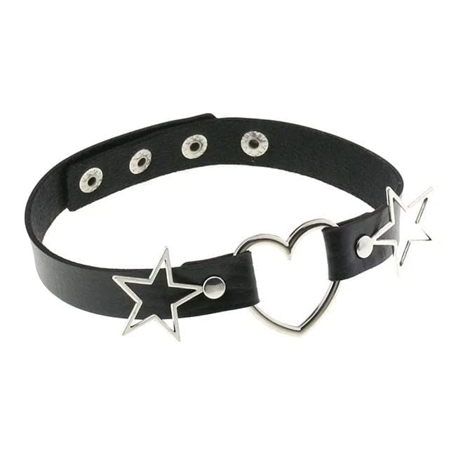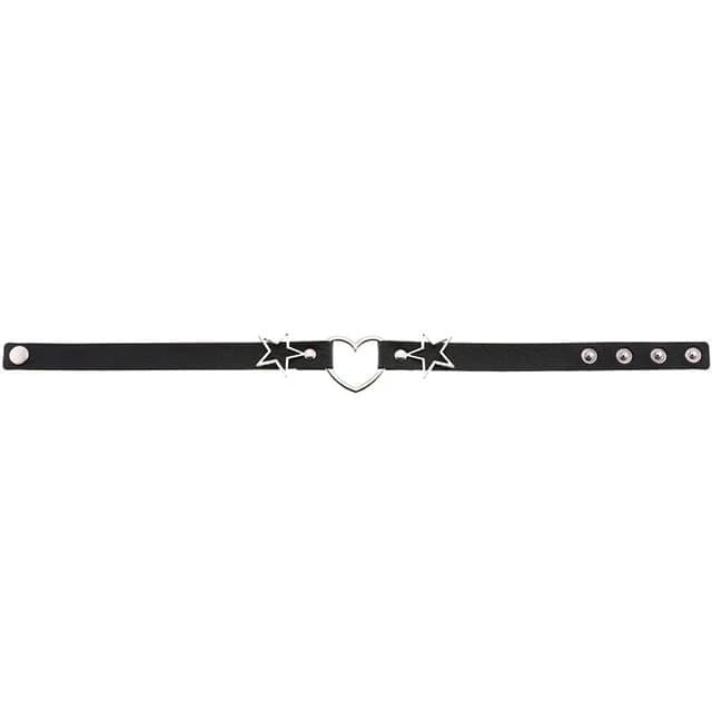 Add a touch of love to your day-to-day with the Cosmic Love Gothic Choker Necklace. Featuring faux leather with a statement heart and star silver hardware to the front and an adjustable back for a perfect fit.