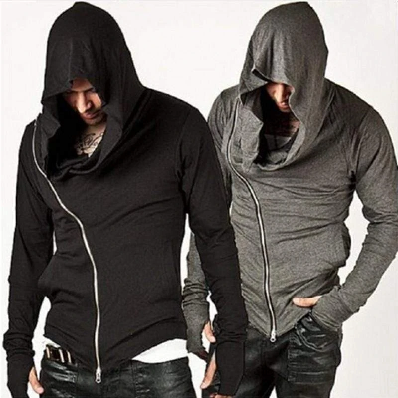 Creed of an Assassin Hoodie you have the presence of an assassin. this hood has 2 side pockets and a solid color and a zip closure at the front.