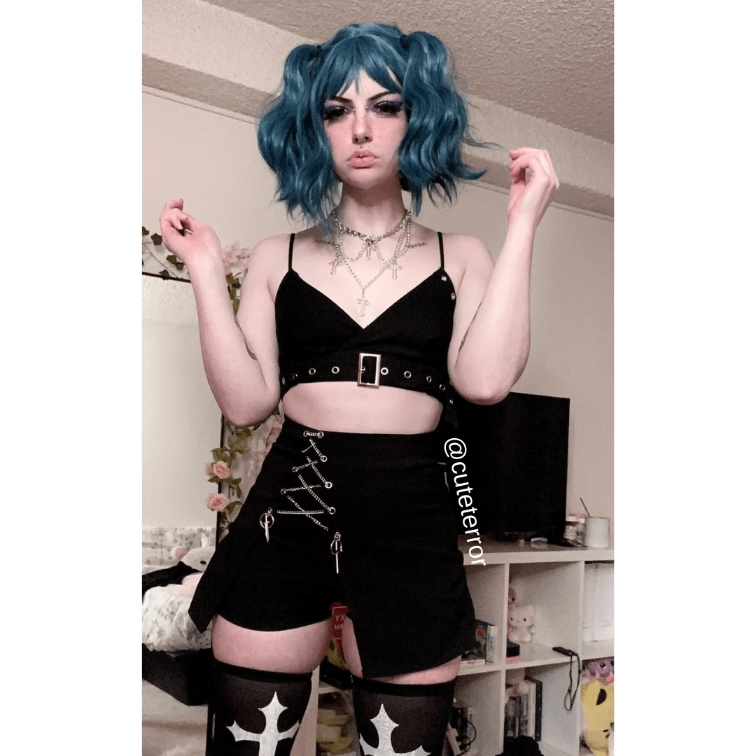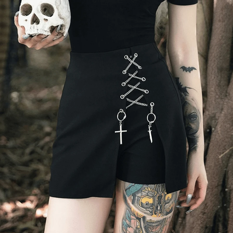 Most of our products are made with a range of polyester lace, faux leather, nylon, cotton, and even sometimes silk. Please look at the description above for the specific gothic shorts.