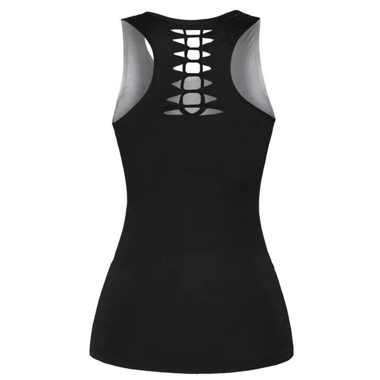 Skull prints on a tank top with a skeleton cutout in the back. Constructed with polyester and spandex and sizes up to XL. This top will have them clearing the street for you!