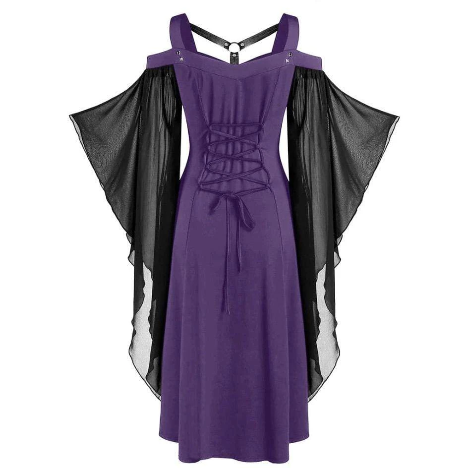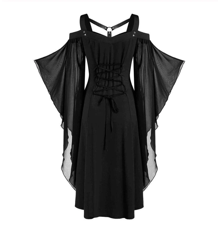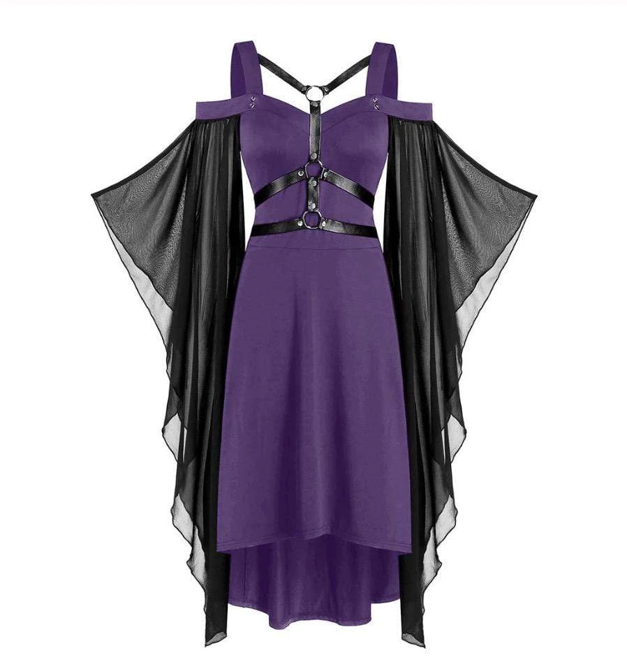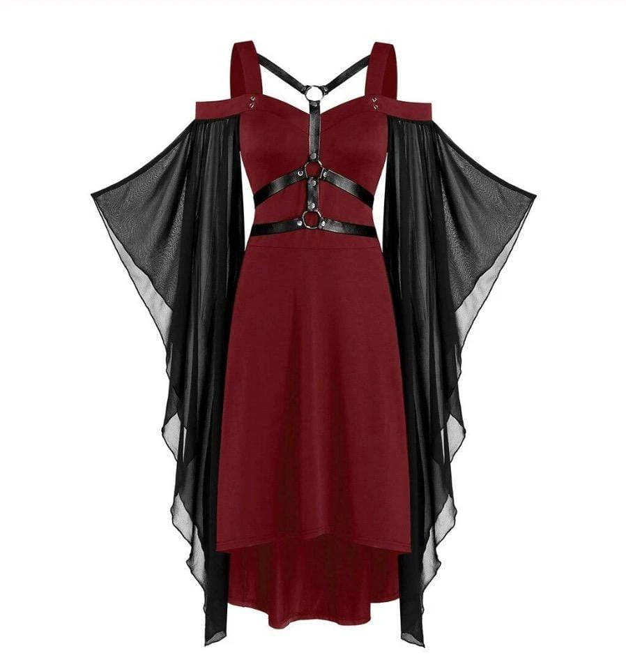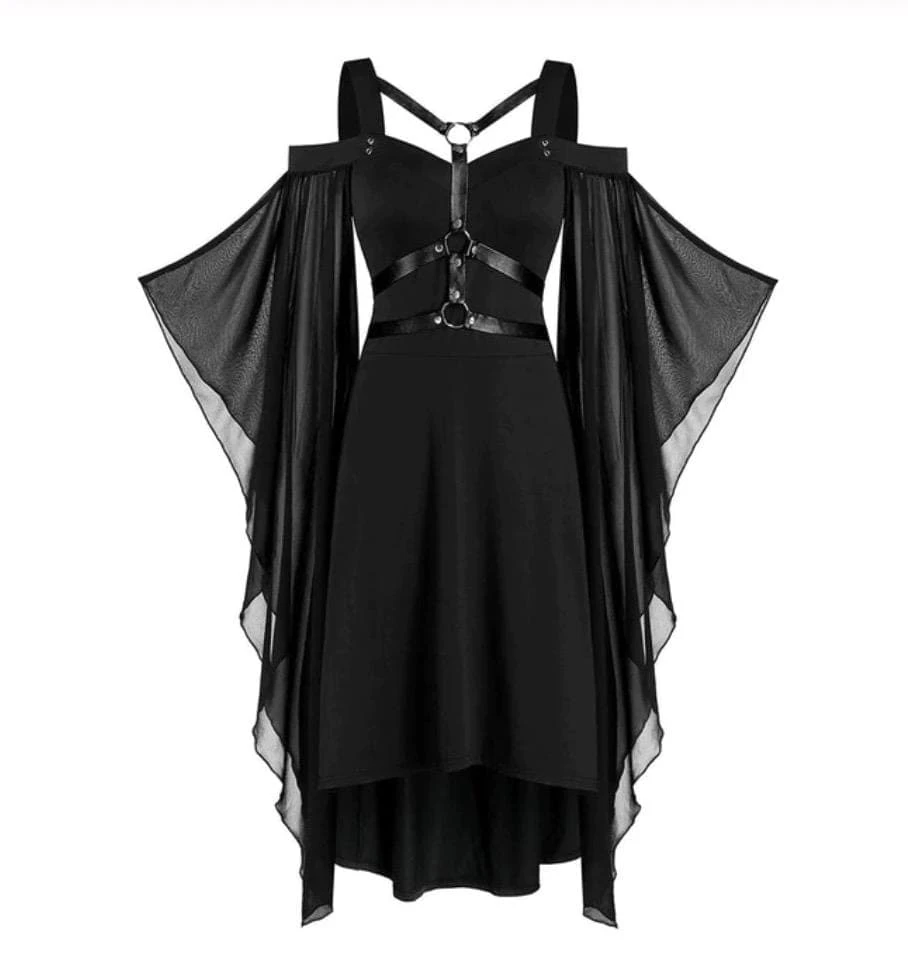 We give you, the Delora dress. Complete with a beautiful harness that runs to be a strap of the dress, a V neck and sleeves that give you wings!