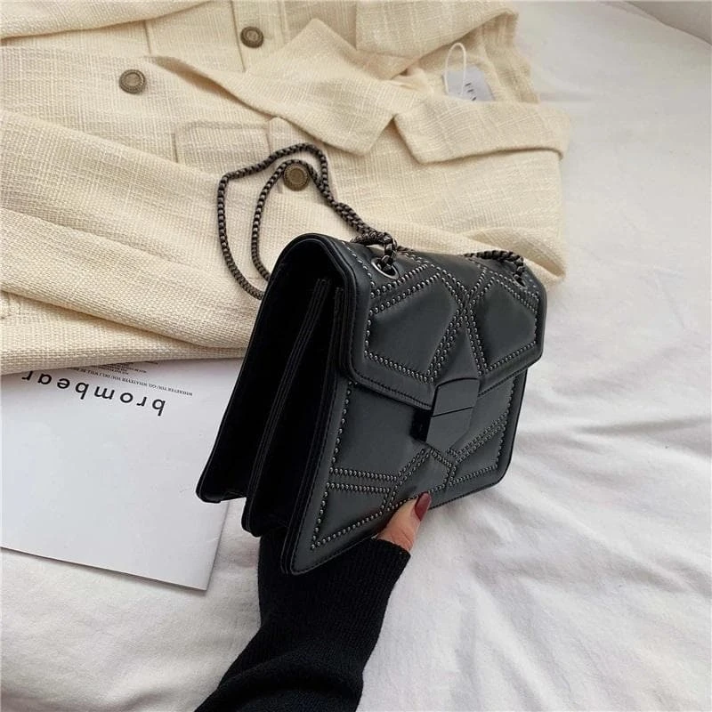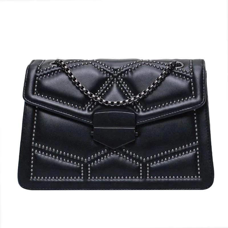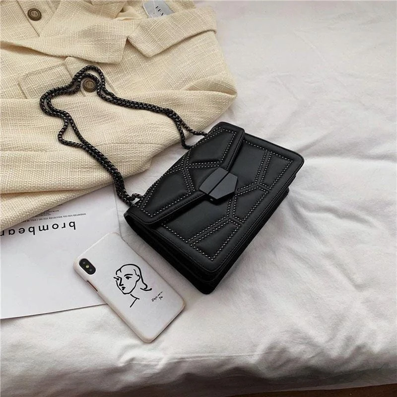 Destiny Black Chain Bag cuz your dreams are just around the corner bb. This fashion leather bag has a link chain, rivet design, and hasp closure type, it is made with high-quality PU leather.