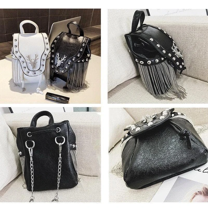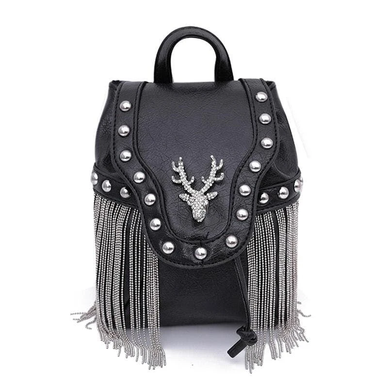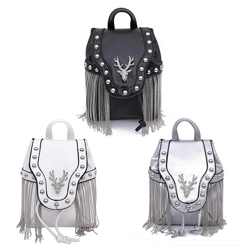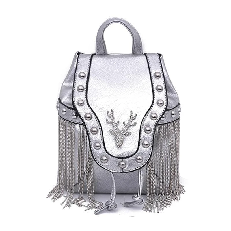 Get ready for any adventures with our Diamond Elk Shoulder Bag. Superior grade faux-leather, statement tassels, long chain strap, and a dazzling elk. Perfect size so you can fit yer must-haves, but small enough to be effortless!