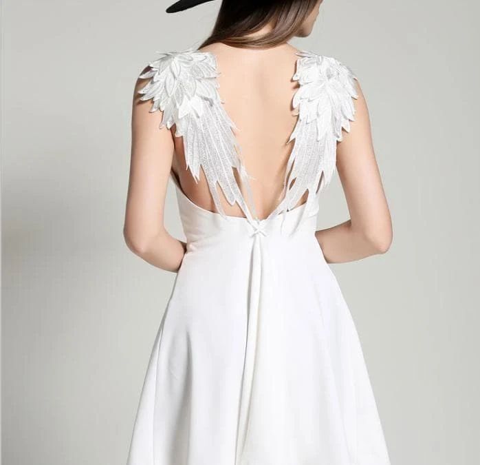 This black velvet mini dress has a Angel wing design at the back, Above knee length, and V-neckline. We know you’d be sold at the angel wing design, but we also guarantee that it is damn comfortable with its patchwork pattern and the A-Line style.Â
