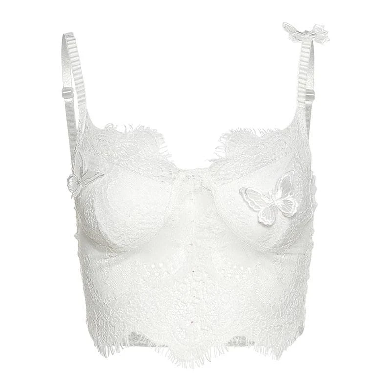 You’ll be playin’ with their hearts when ya wear this “Eve” sexy cami crop top with luscious lace trim, adjustable shoulder straps and a butterfly detail on the front and strap. Made in a stretchy soft fabric blend for perfect comfort and fit.Â