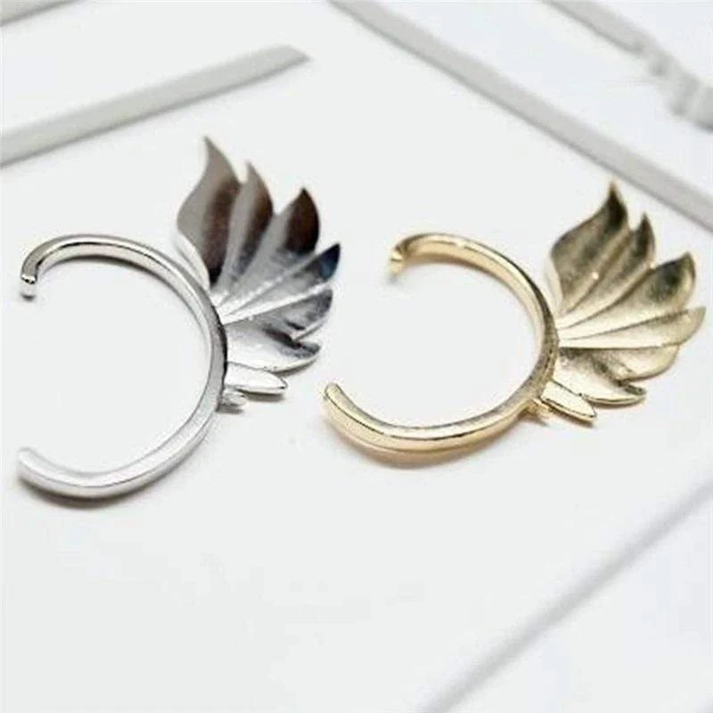 The Fallen Angel’s Wing Ear Cuff is cast in a solid alloy. It perches on the ear, poised and ready to fly. It is beautifully chic, holds tight but does not press.Â