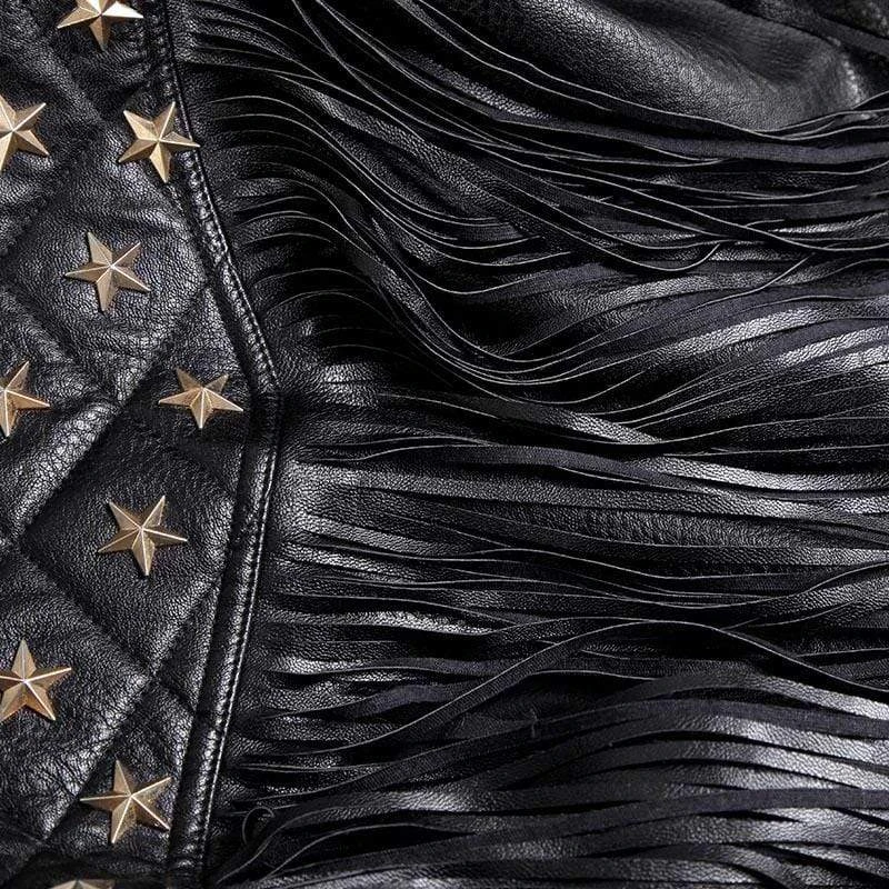 Faux Leather Tassel Gothic Jacket gotcha riding the line between right and wrong bb. You’re too good at being bad in this inspired western-style jacket featuring a nail star around the chest and shoulder, a short fold down collar, and a fringed zipper design.