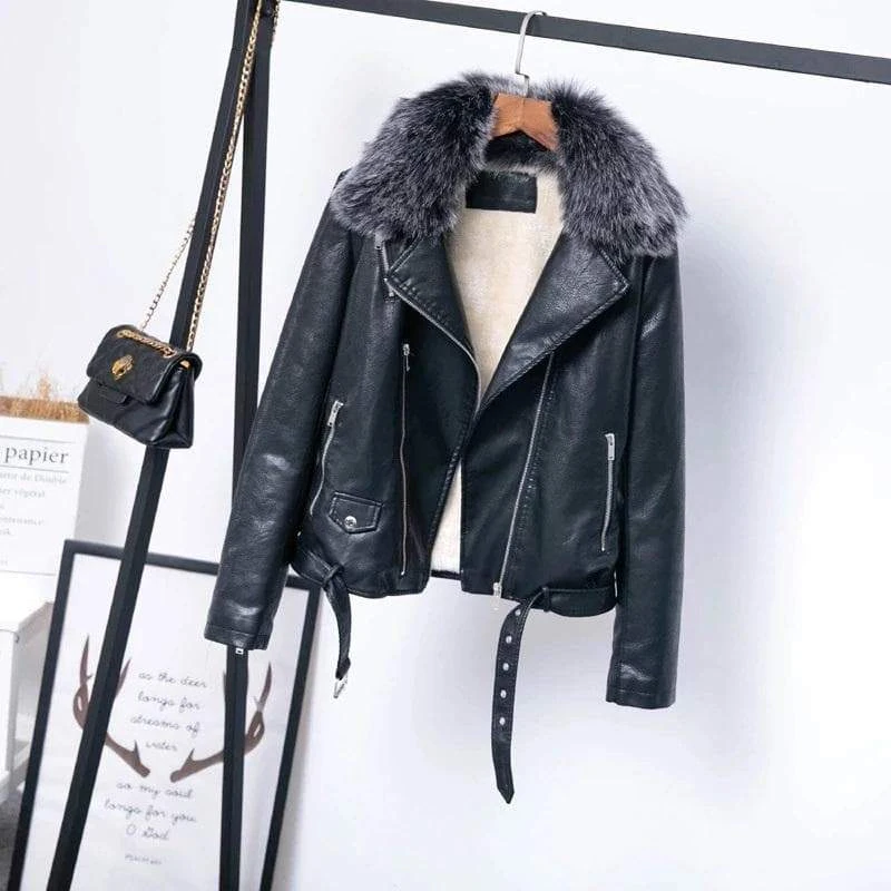Faux Leather Winter Gothic Coat cuz you just love to cause a scene bb. Show off in this black motorcycle coat featuring a fur collar that provides additional warmth around the neck, a zipper design all around the coat, and a belt which gives off a badass killer looks.