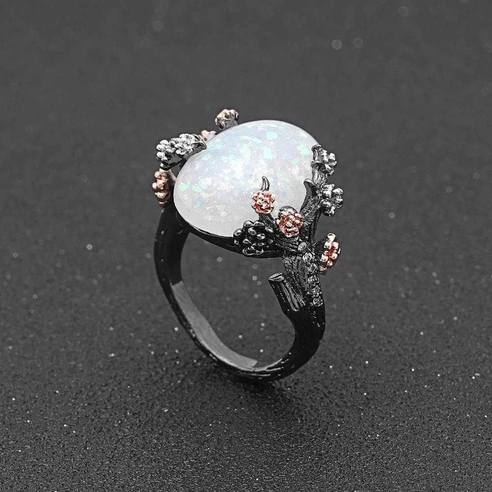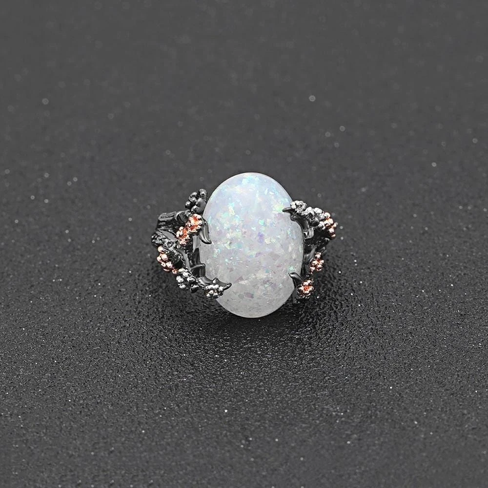 The ‘Fire’ opal ring combines opal stone with copper hardware. Large yet lightweight to ensure comfortable wear. Perfect for adding a little extra drama to your fav looks!
