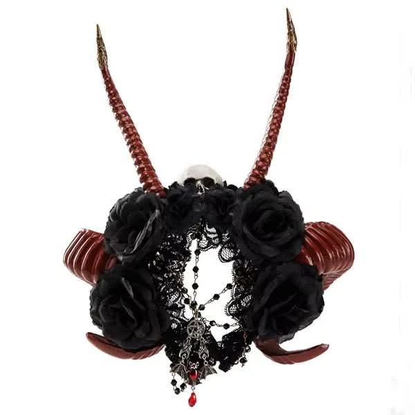 Embrace the eerie elegance of Halloween with this stunning Forbidden Realm Blood Horn Headband, featuring a striking mix of antelope horns, sheep horns, feathers, and roses. Perfect for Masquerade balls, costume parties, or a unique addition to your spooky season wardrobe, this headband combines dark fantasy and gothic charm into one statement piece.