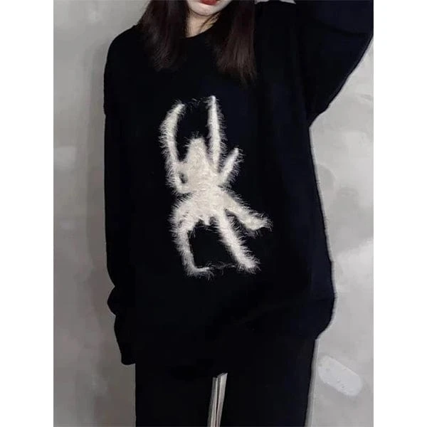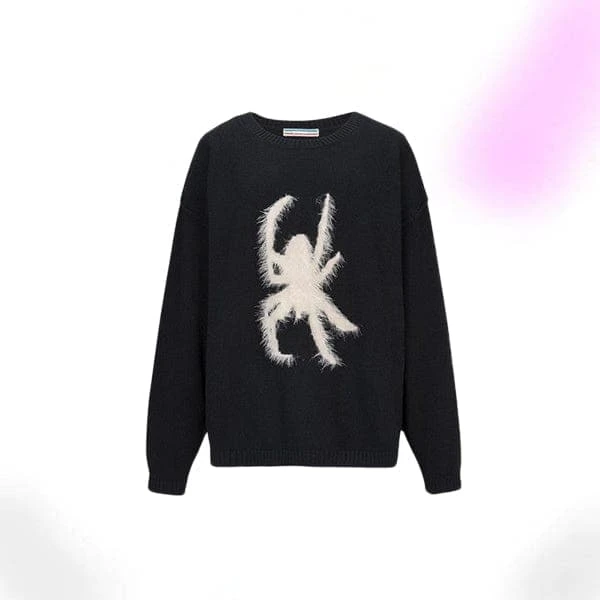 The Black Sweater is made of a soft fabric and comes in black with a white fuzzy spider in front. This vintage streetwear piece could be an amazing gift for a beloved one. Because of high-quality materials and knit design, this sweater is unbelievably comfortable, and perfect for cold winter evenings!