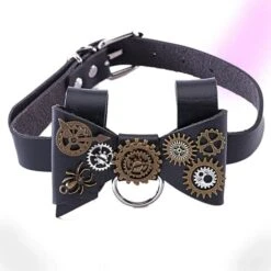 The Geared Bowtie Choker Necklace is made of high-quality PU material, metal gear embellishment on the bowknot, and adjustable buckle closure at the back. A perfect addition to your steampunk outfit. Wear it for Halloween, masquerade, steampunk festivals, and other occasions.