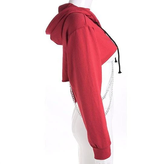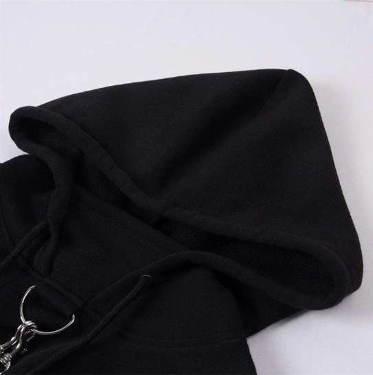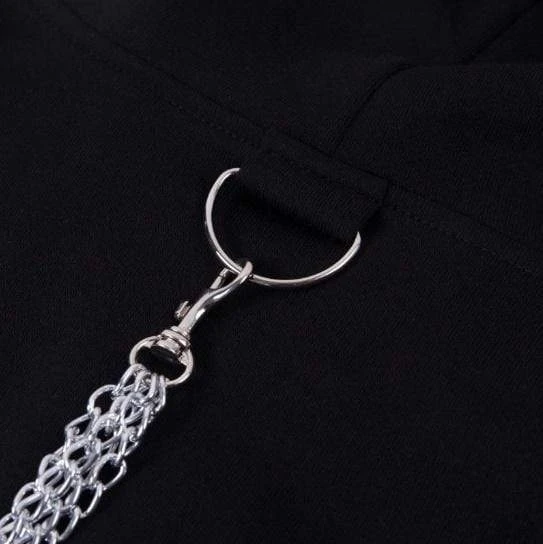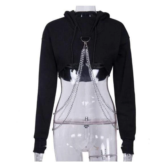 Gothic Chain Crop Hoodie cuz even on your worst day, you’re still killing it bb! Life is too short, go out and own it in this sexy pullover hoodie. This black sweatshirt hoodie features four metal chains connected from front to back which makes you look like badass chic!