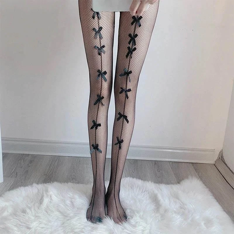 Gothic Fashion Fishnet Tights gotcha lookin’ like all kinds of sexy! Seduce them instantly in these hot sexy tights that feature a sheer fishnet construction and sweet satin bows on the front.