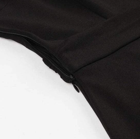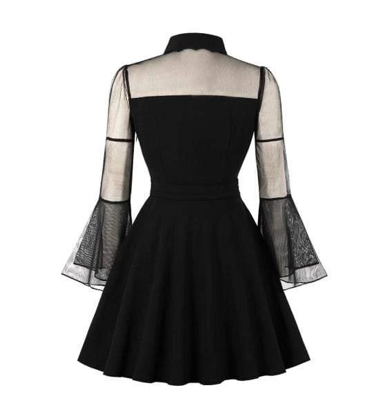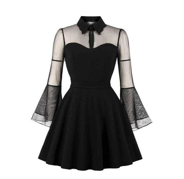 The flare sleeves, along with the bat shaped collar makes it really worth it. The dress is a perfect example of a bat baby to Goth transformation. Also, the mixed material and the unique neckline is a beautiful combination as you can witness yourself.Â