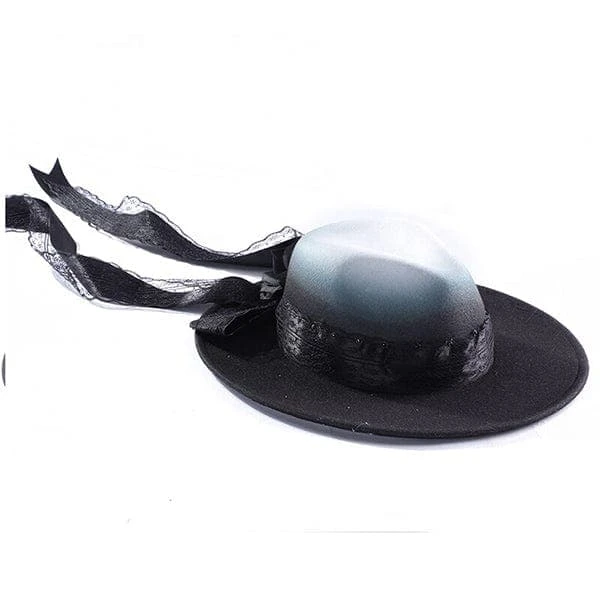 This elegant ladies hat is a perfect choice for your next event. A luxury gradient black and white felt Fedora, finished with a delicate black bow and accented with a beautiful black flower .