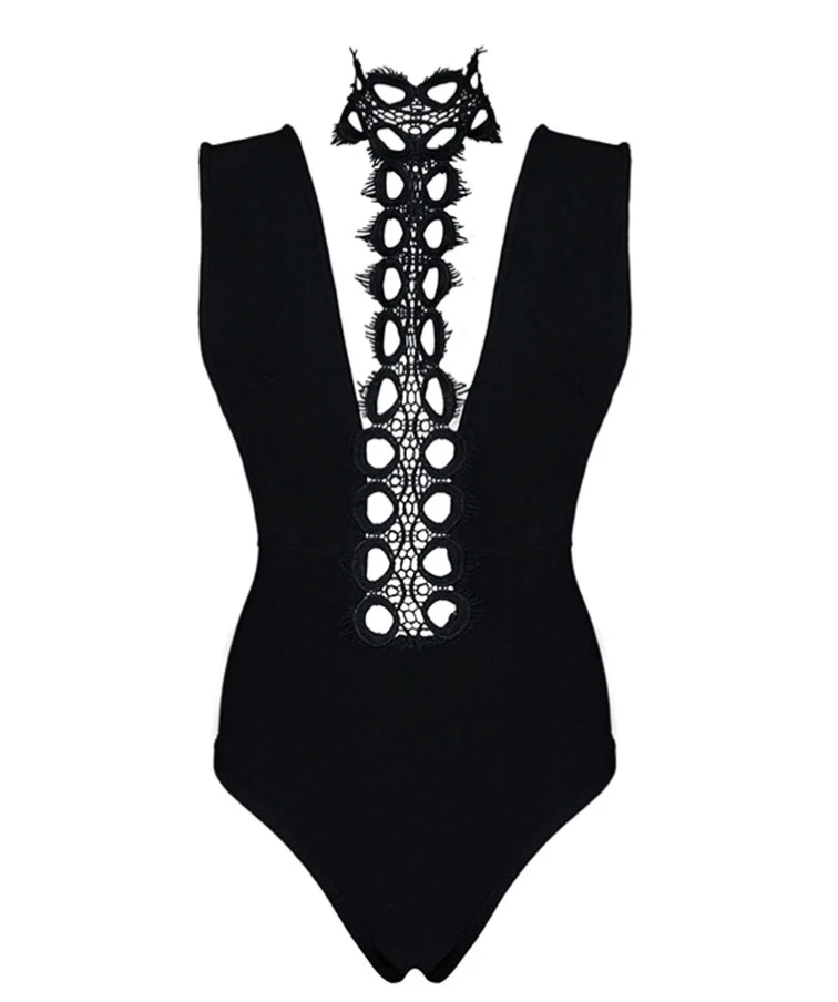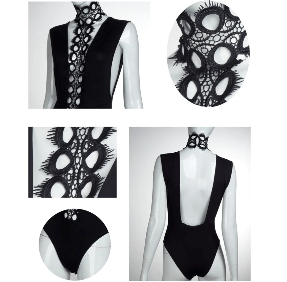 The Gothic Nova Bodysuit has many features that make it an outstanding fashion design. The deep cut to the waist on the back and the sides along with the high cut thighs are just a part of what makes this an exotic bodysuit. Add the hollowed out pattern that forms a choker collar and runs from there to join in at the cleavage and down to the waist for the extra heat that makes this a badass sexy bodysuit.