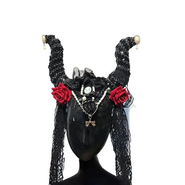 Elevate your gothic style with our stunning Gothic Pearl Horned Headband! This beautifully crafted headpiece features intricate roses and pearls paired with striking gothic horns, measuring approximately 18cm each. The headband includes enchanting lace veils extending 20-25cm, adding a touch of mystery and allure—perfect for Halloween, costume parties, or any occasion where you want to stand out. This exquisite accessory is a must-have for anyone looking to express their individuality. Make a bold fashion statement and unleash your inner gothic goddess today!