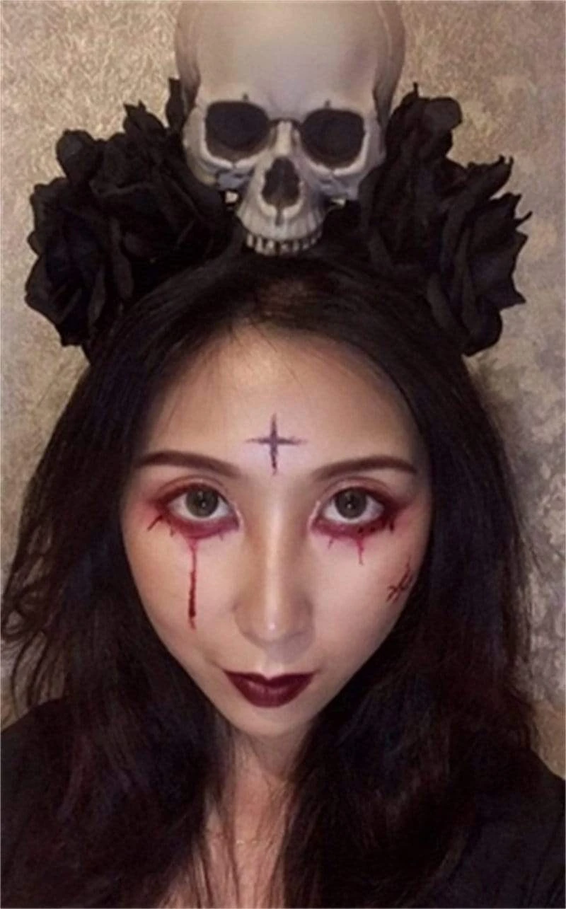Size: Skull size 9*10*12cm ,Rose 10cm, with the veil 60cm length