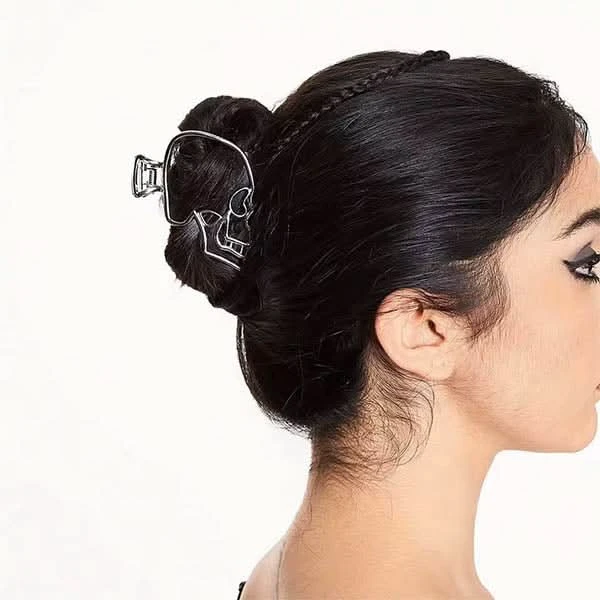 This sleek and stylish hair claw is perfect for adding a touch of gothic elegance to any hairstyle. The intricate skull decoration makes it a unique and eye-catching accessory for both everyday wear and special occasions.
