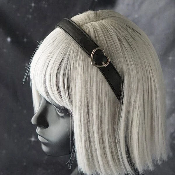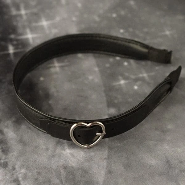 Keep your hair out of your face in a simple, yet edgy way! This faux leather headband features a silver-tone heart buckle accent. Suitable for gothic costumes, theme parties, Halloween, cosplay parties, and more.