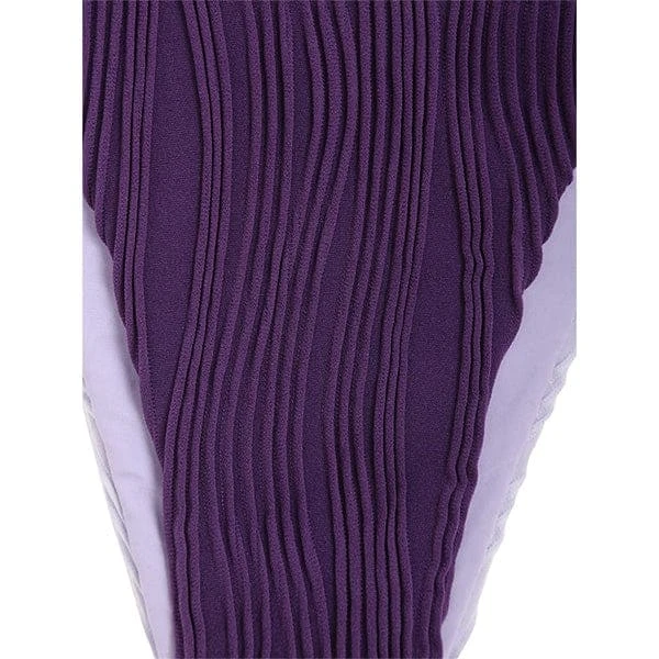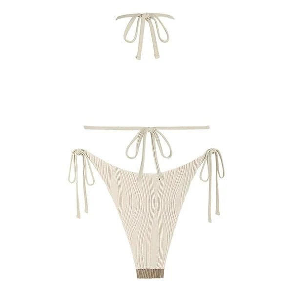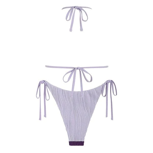 Ready to turn heads at the beach this summer? This sexy color block swimsuit features a triangle halter top, high-cut thong bottom, and tie sides for an adjustable fit. Crafted from textured fabric for the perfect combination of comfort and style, you’ll be rocking a new look all summer long!