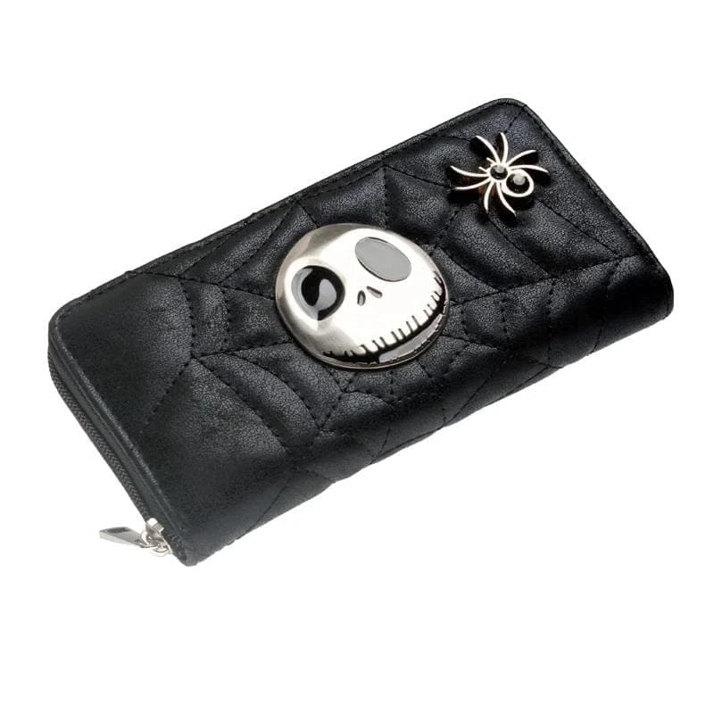 This Jacquelin Long Wallet is made from vegan-friendly faux leather and polyester of a superior sikk quality. Keep all your essentials in this punk wallet that highlights the Pumpkin King of Halloween and features multiple interior slot compartments and a zipper pocket for your coins.