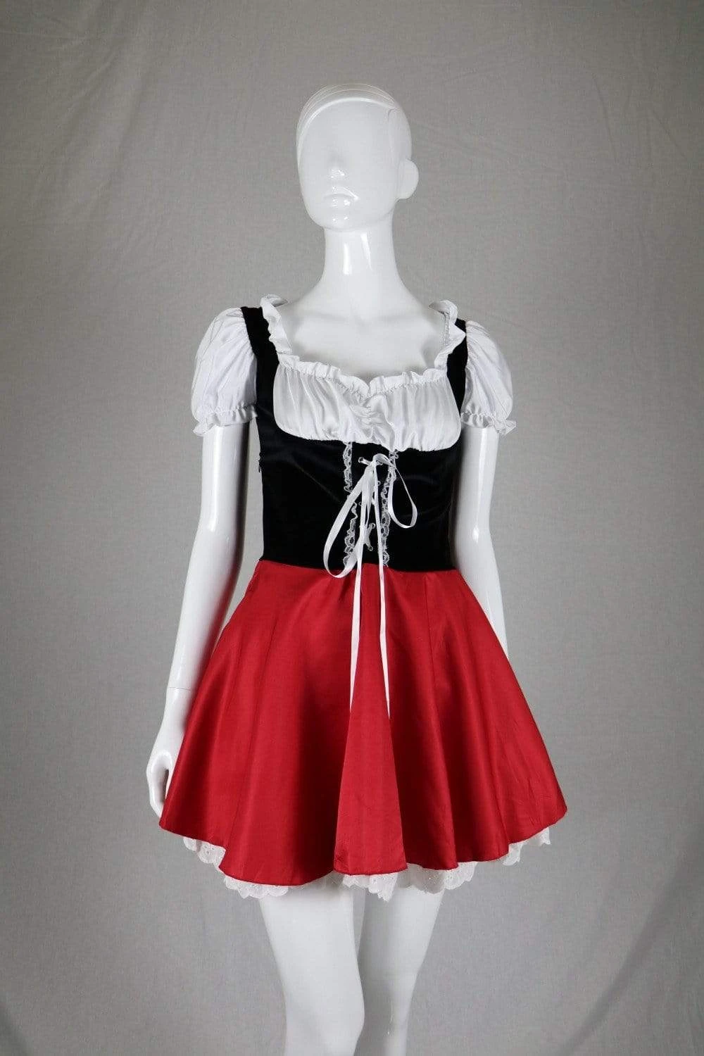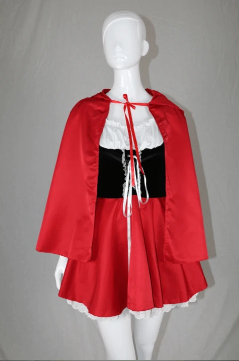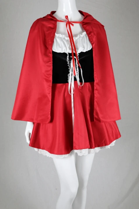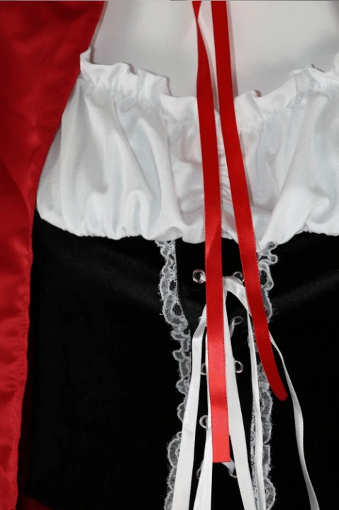 We do, however, choose this outfit to be the choice of weapon for you. This costume, with its full Goth twist of corset and the combination of classic colors is a perfect Little Red Riding Hood Costume to slip into when you go hunting.Â