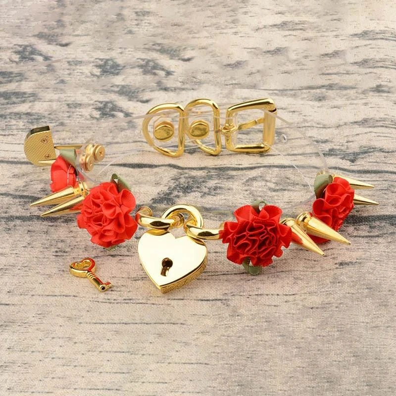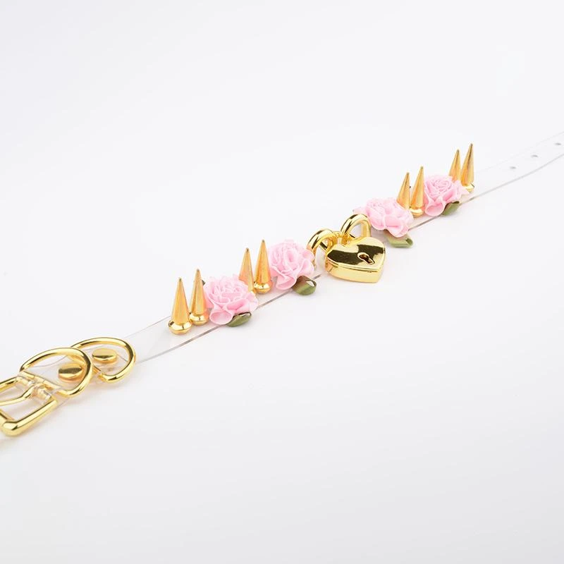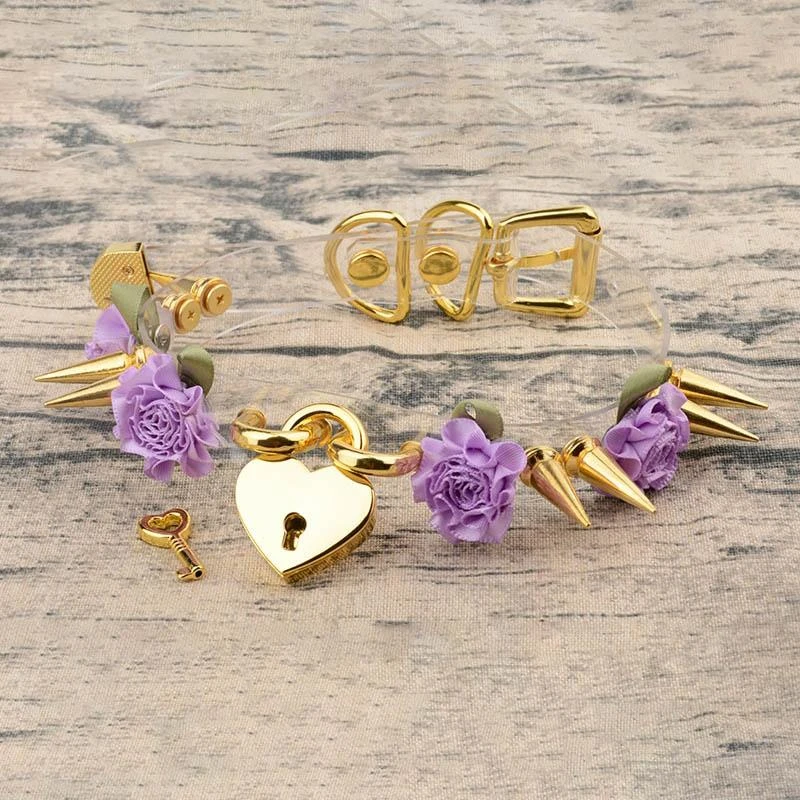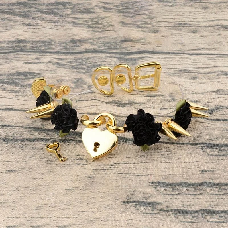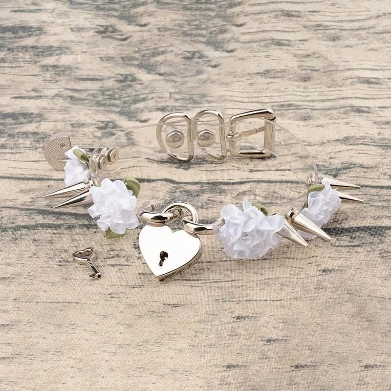 Lolita Floral Heart Lock Choker cuz all you need is a key to unleash the beast in you. This cute leather choker features its adorable lockable heart pendant with flower designs. It has a spike design constructed in an ad