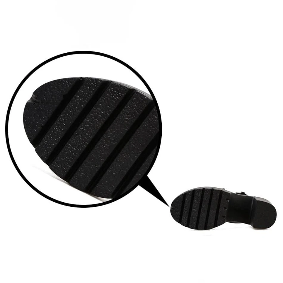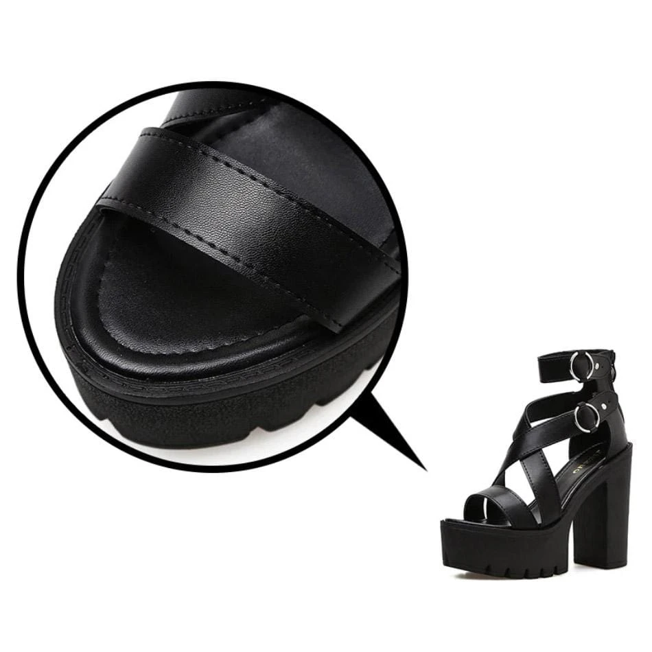 The PU material with those squared heels along with belt closure are about to cause a riot. Â